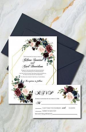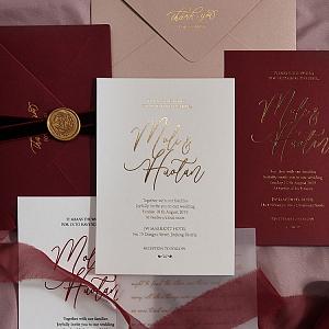 So romantic and noble invite with gold and burgundy color palette!