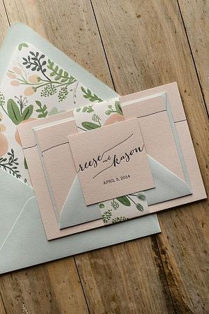 This sensible girl chose this earthy and elegant invite for her country wedding in March, so gorgeous! A little glitter adds a special splash to the set.