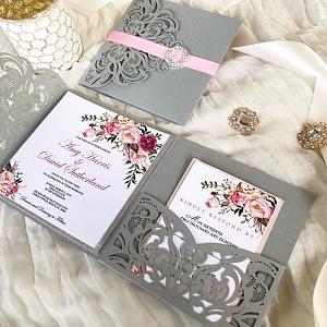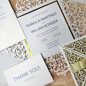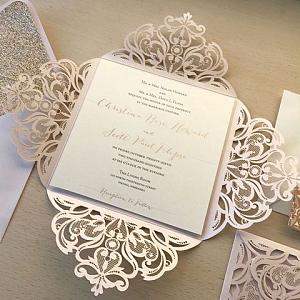 Elegant laser cut invitation that can be customed to any style.