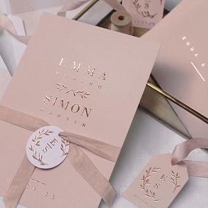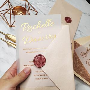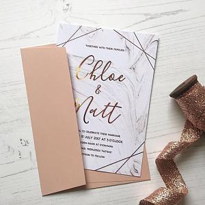Elegant blush gold acrylic wedding invite, foil belly band