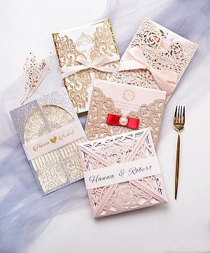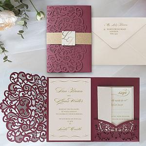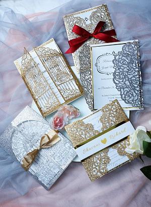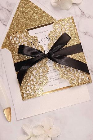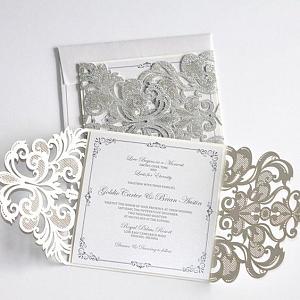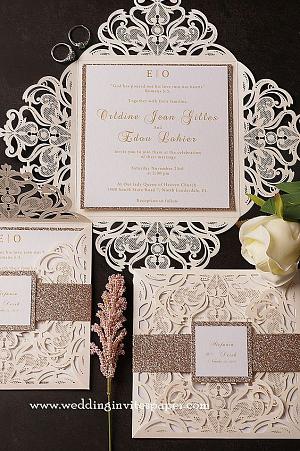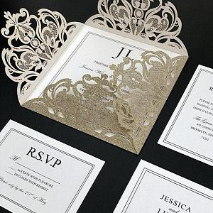 glittery laser cut wedding invitations