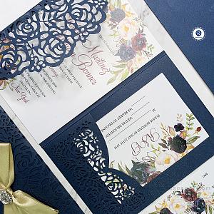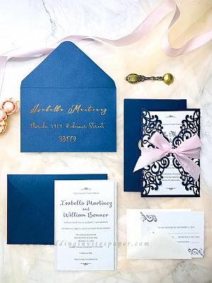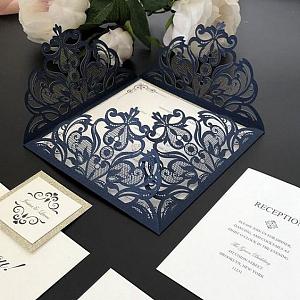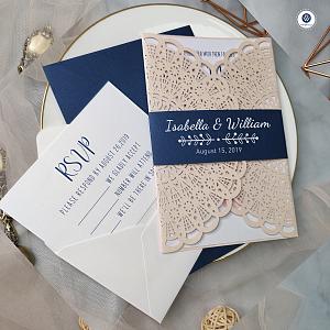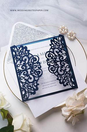 navy laser cut wedding invitations