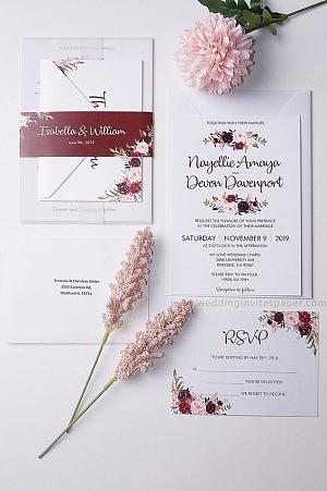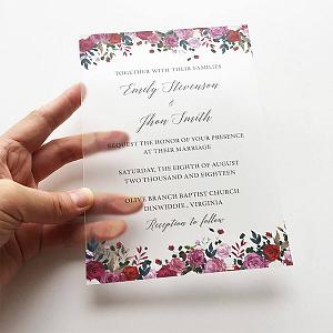 Rustic floral florals acrylic wedding invitations, spring summer fall wedding invites WS274
