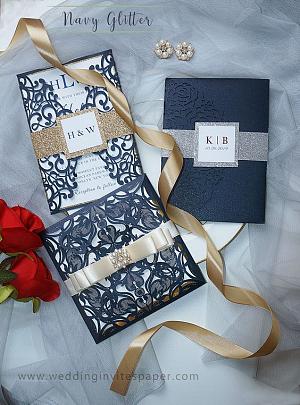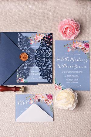 navy laser cut wedding invitations