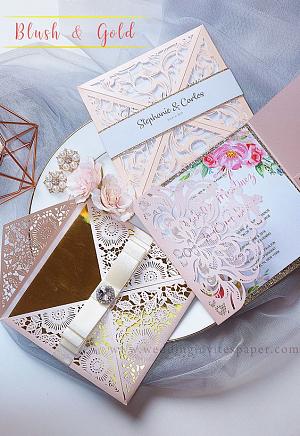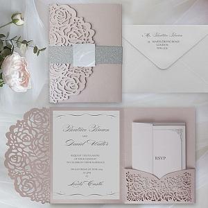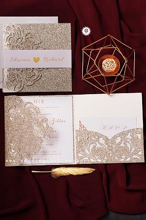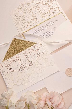 glittery laser cut wedding invitations