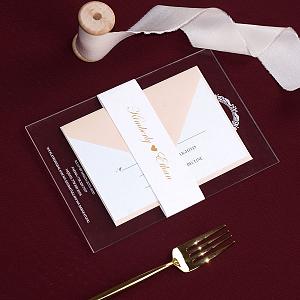 Elegant blush gold acrylic wedding invite, foil belly band