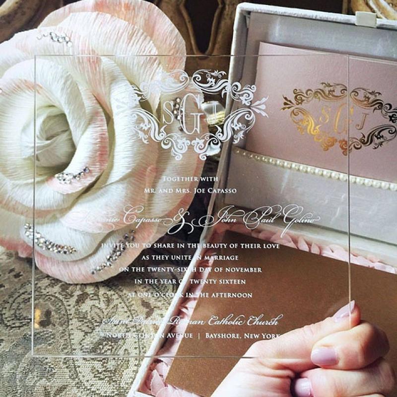 Romantic royal monogram acrylic wedding invitations, gold invite WS278