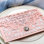 Blush Pink pocket wedding invitations with diamante WS067