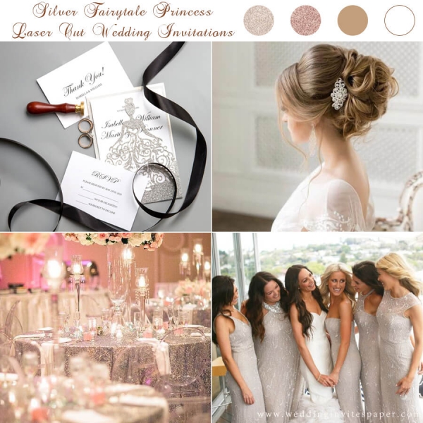 Modern Silver Glitter Laser Cut Wedding Invitations WS015
