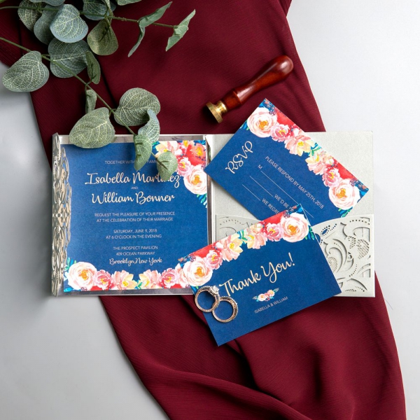 Description: As Laset Cut enbales to make a  delicate expression of emotions, it has become the newest trend for wedding invitaion.The watercolor flowers are very realistic and beautiful  so as to produce romance is in the air once the guests receive this delicate invitation.