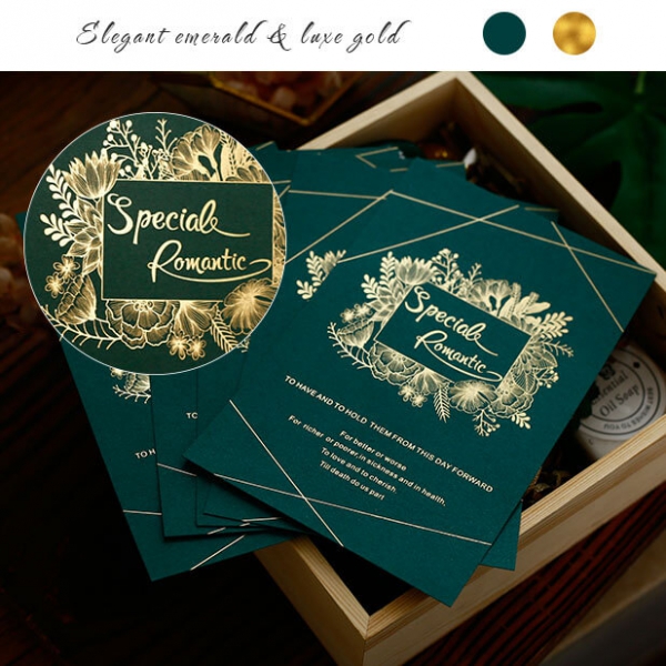 Elegant emerald and luxe gold wedding invite, foil wedding invite, royal wedding invite WS201